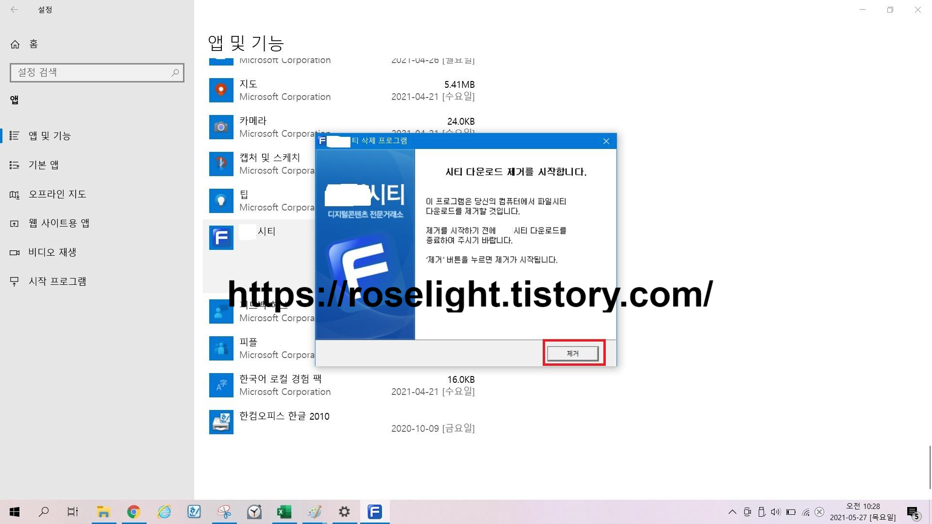 8. 컴퓨터 프로그램 다운로드 제거를 시작합니다. 제거 눌러주세요.