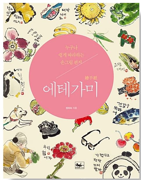 에테가미(絵手紙)는 그림을 뜻하는 에(絵·え)에, 손과 종이를 뜻하는 테가미(手·て, 紙·がみ)를 붙여 만든 말입니다.