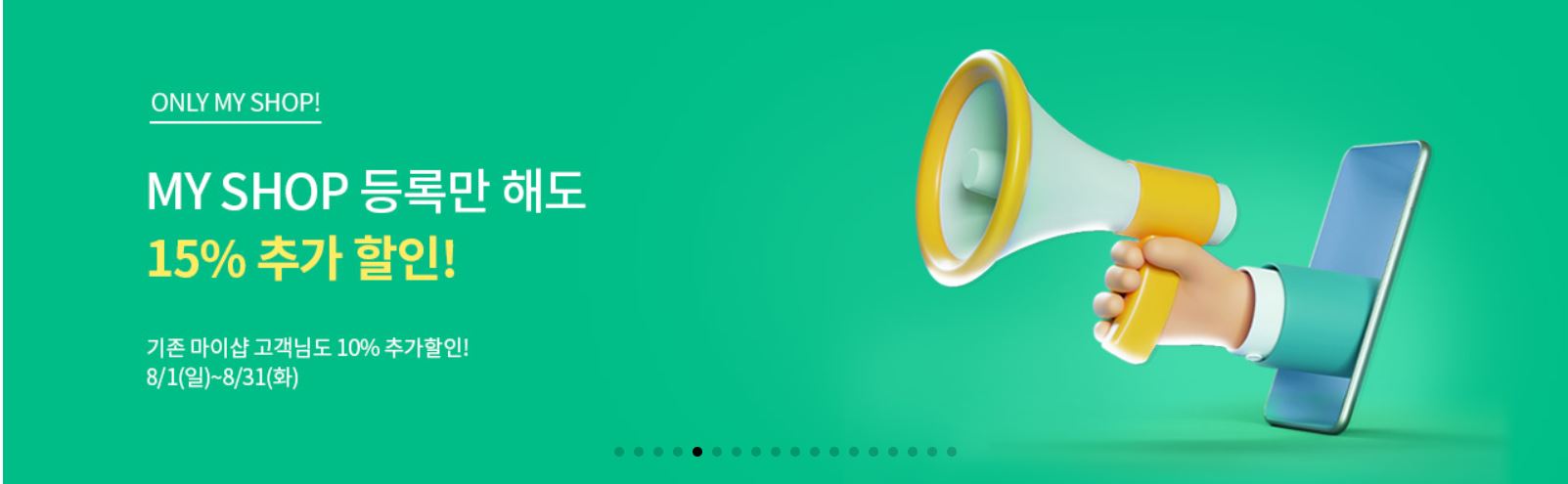 MY SHOP 등록만 해도 15% 추가 할인, 기존 마이샵 고객도 10% 추가 할인해준답니다.