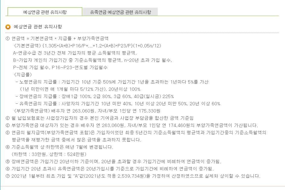 공단 홈페이지에서 간단하게 국민연금계산기, 국민연금예상수령액 조회했을 때와 많이 차이는 나지 않습니다.