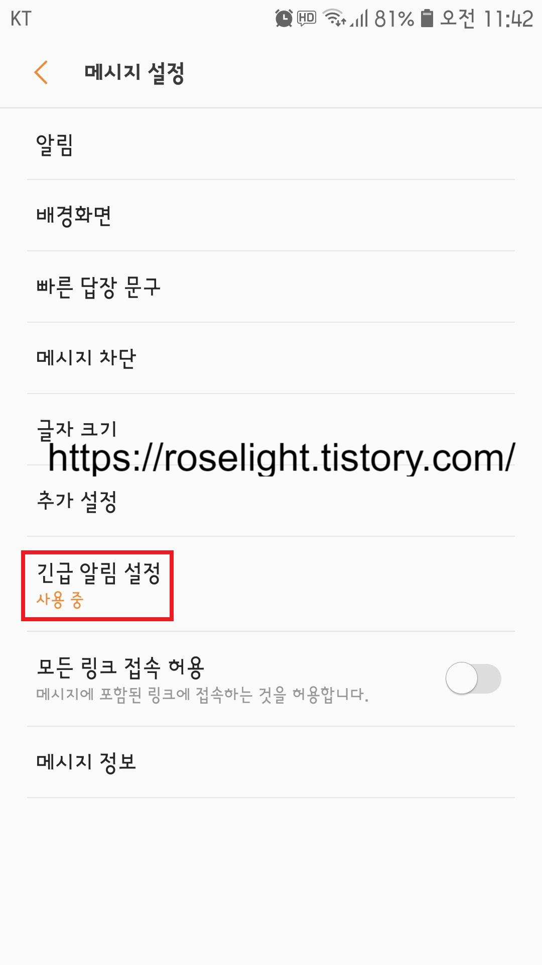 4. 긴급알림설정 눌러주십니다.