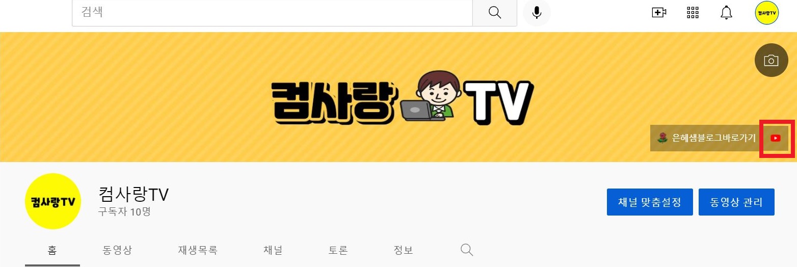 유튜브 채널로 들어갑니다.